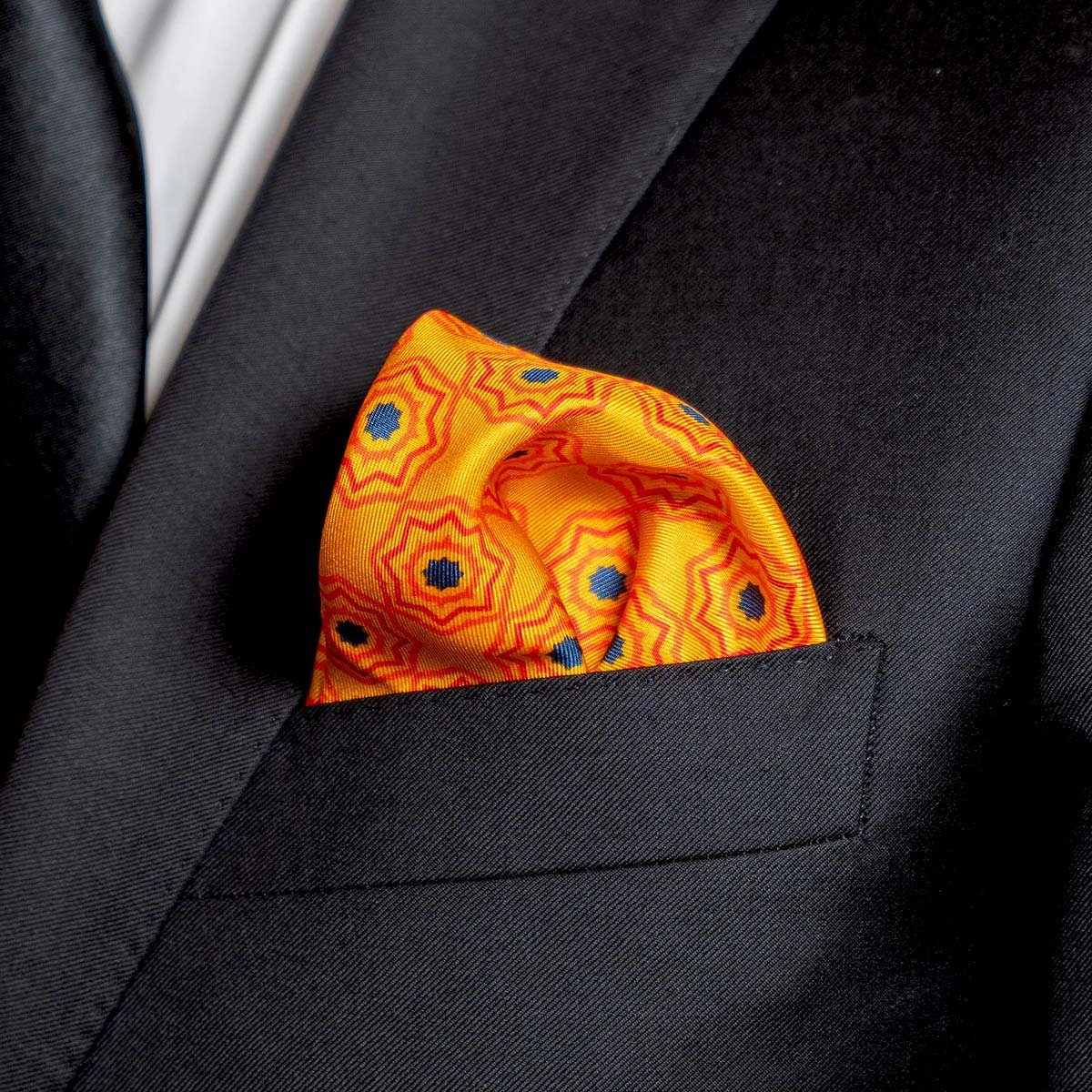 All our pocket squares feature original designs, and are printed on 100% silk, with hand hemming throughout the edges.