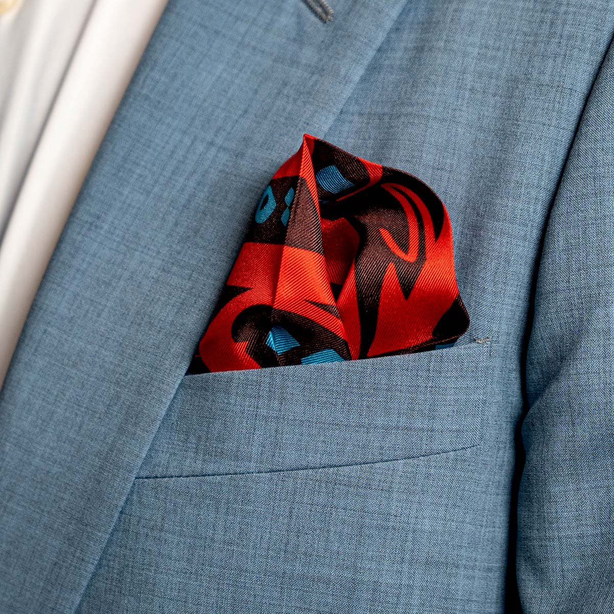 All our pocket squares feature original designs, and are printed on 100% silk, with hand hemming throughout the edges.