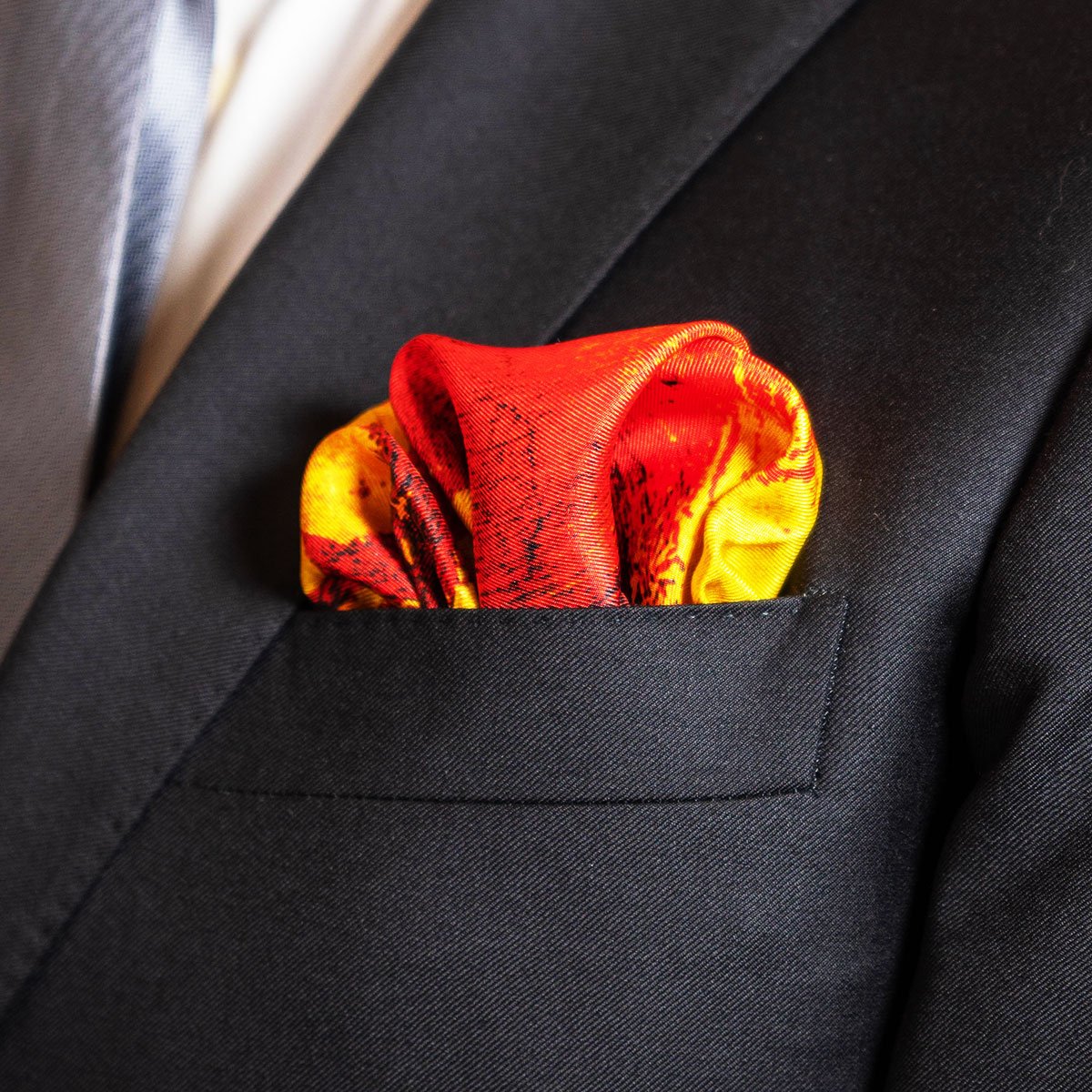 Our red and amber silk pocket square is a luxurious accessory crafted from high-quality silk. Its captivating blend of rich hues adds elegance and sophistication to any ensemble. Versatile enough for formal events or casual outings, this pocket square exudes refinement and class, making a bold statement with every fold.