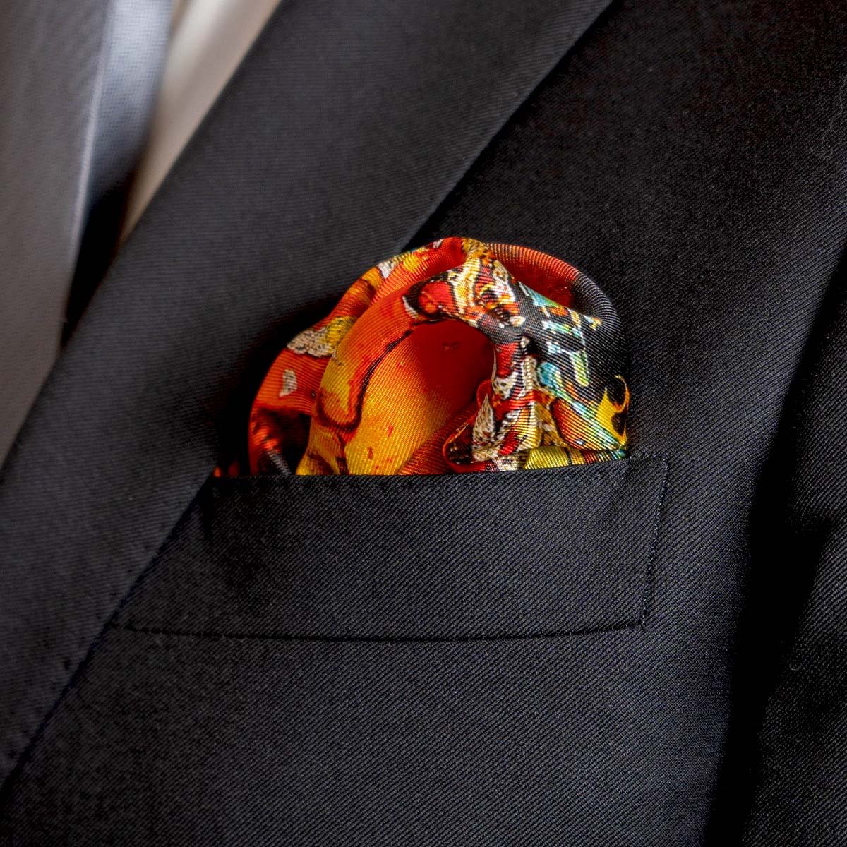 All our pocket squares feature original designs, and are printed on 100% silk, with hand hemming throughout the edges.