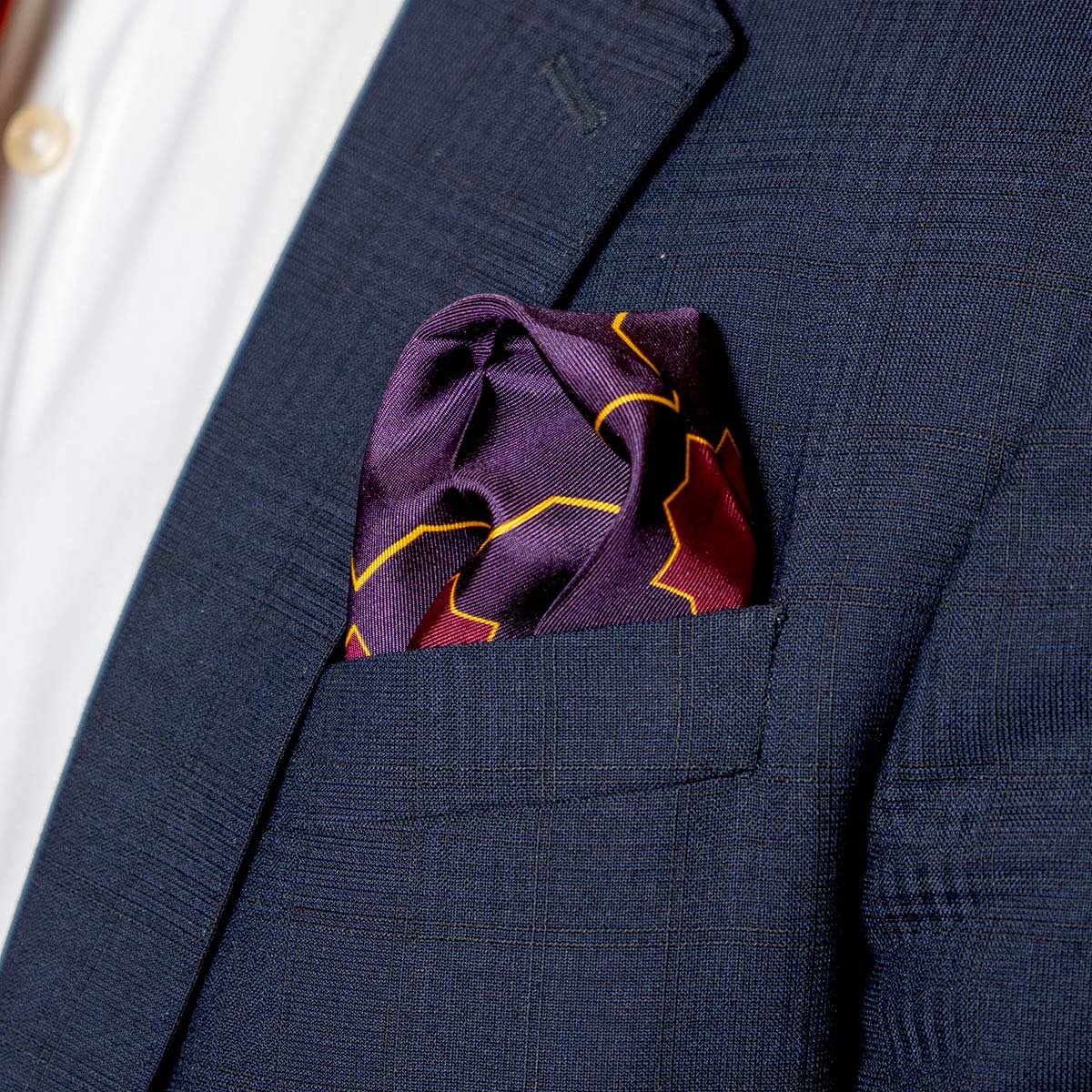 All our pocket squares feature original designs, and are printed on 100% silk, with hand hemming throughout the edges.
